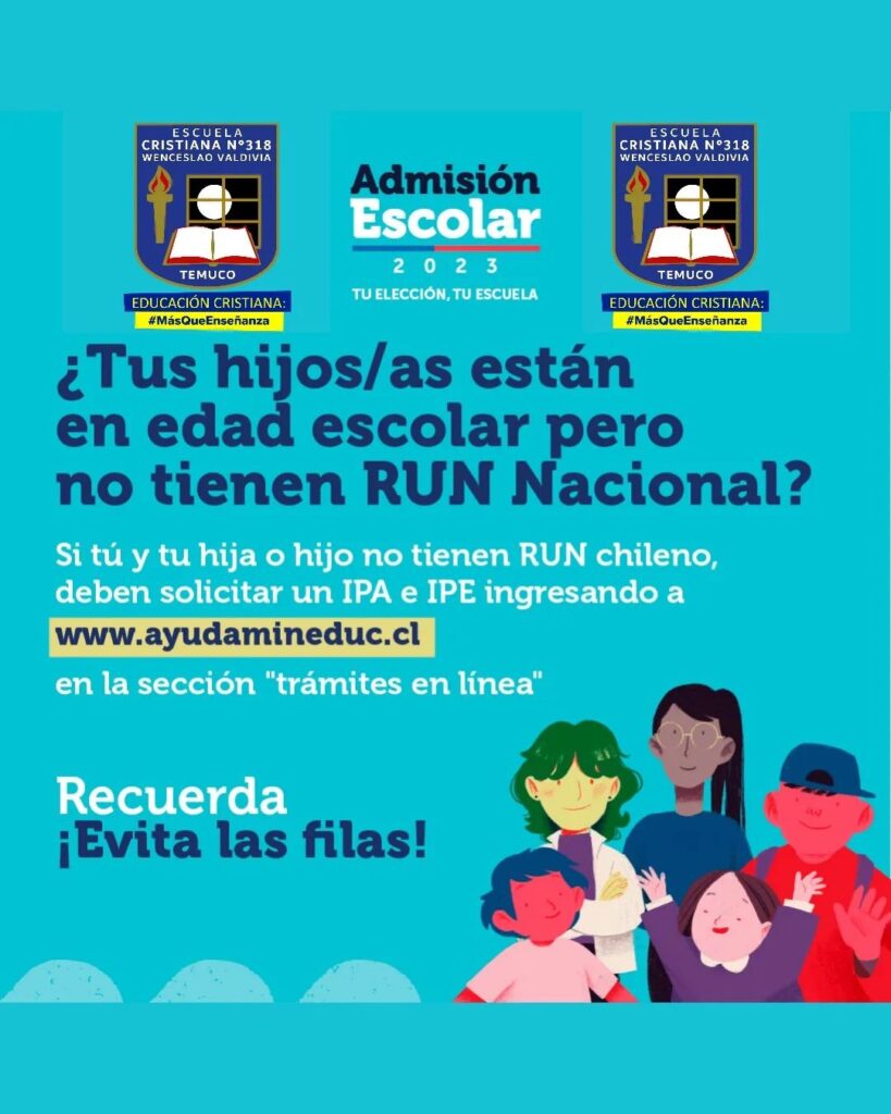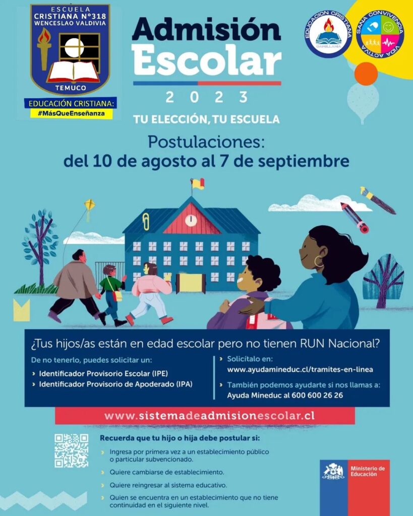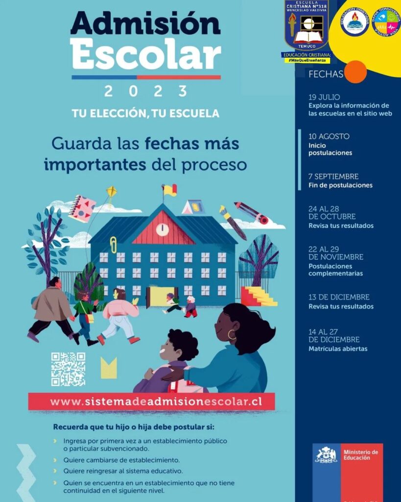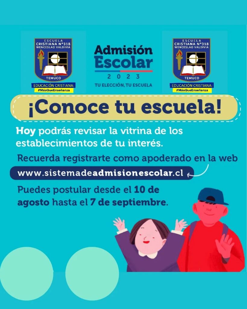 Estimadas familias, junto con saludar les informamos que ya está actualizada la plataforma de postulación a cualquier establecimiento educacional de nuestro país.