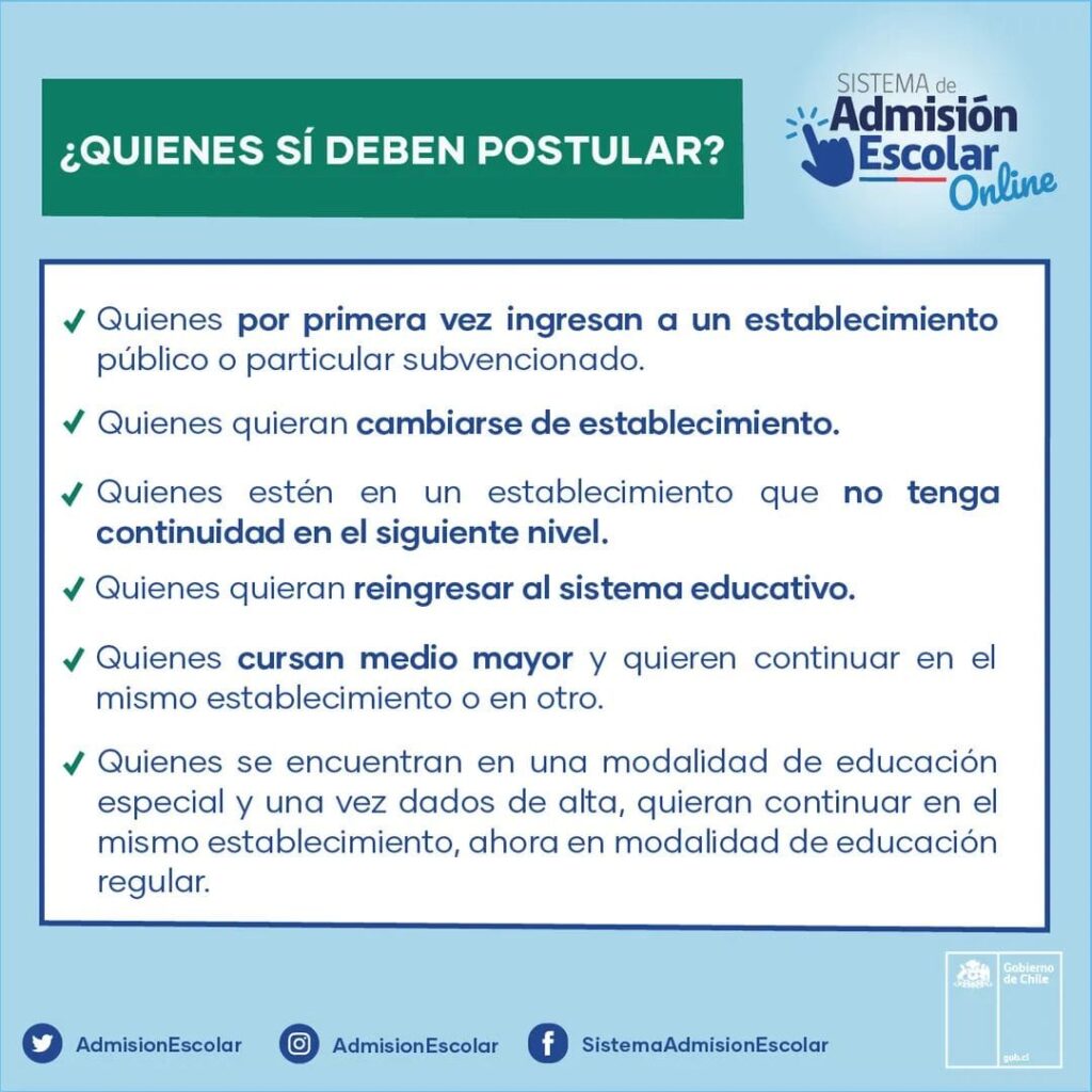 Para más detalles recuerden visitar la web del Sistema de Admisión Escolar.