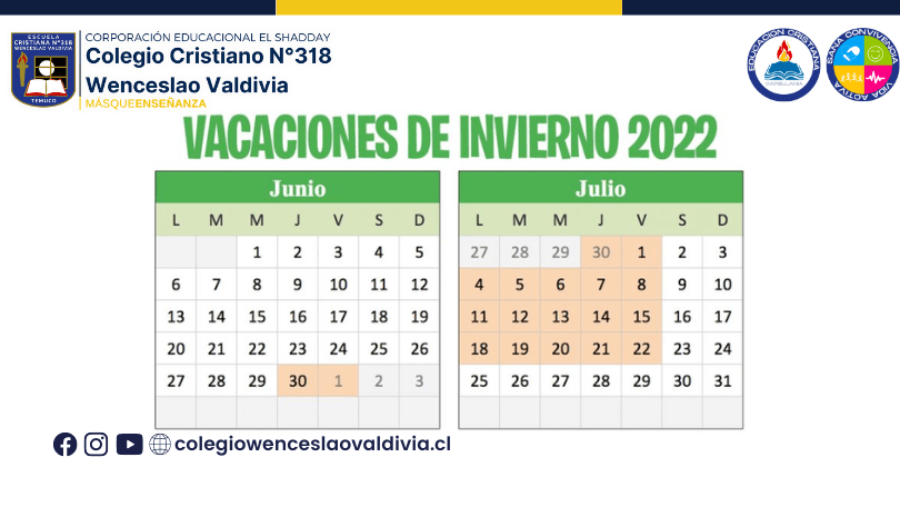 Estimadas familias, junto con saludar les informamos las nuevas fechas de vacaciones de invierno para los estudiantes estipuladas por el MINEDUC en conjunto con el MINSAL: