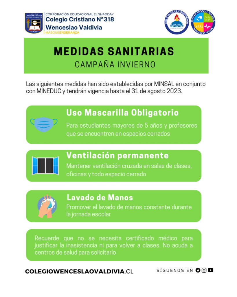Esperando contar con su apoyo, comprensión y colaboración en la aplicación de esta medida preventiva, les recordamos, además que, el autocuidado es fundamental en la protección de la salud de la comunidad educativa.