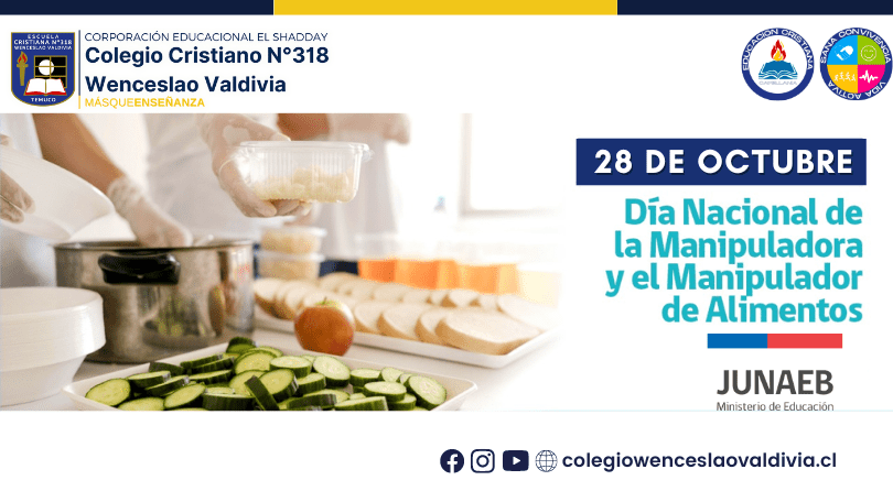 Estimadas familias, les informamos que este viernes 28 de octubre se celebrará el Día Nacional de la Manipuladora de Alimentos y por este motivo nuestras manipuladoras no se presentarán a trabajar, ya que gozan de su día libre.