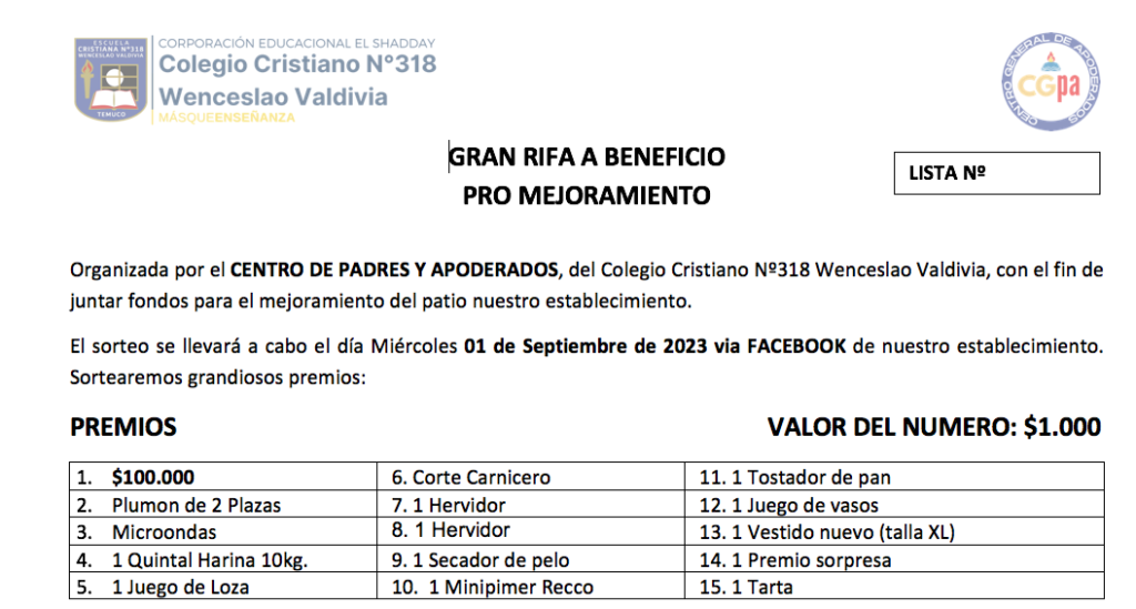 RIFA CENTRO DE PADRES