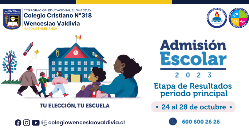 Estimadas familias, junto con saludar les informamos que de acuerdo con el calendario del Sistema de Admisión Escolar año 2023, les recordamos a los apoderados nuevos y 8º básico que desde hoy hasta el miércoles 28 de septiembre deben aceptar o rechazar el establecimiento asignado.